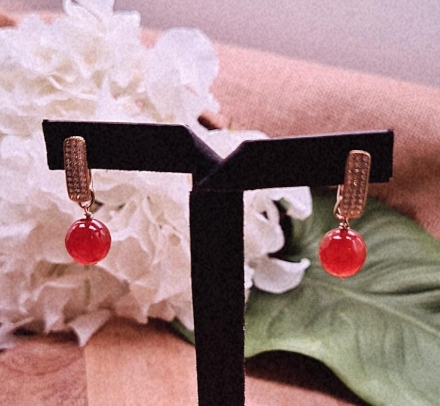 Boucles d'oreilles en argent 925 gold plated zircons et pendentif en Garnet Orange faceté.